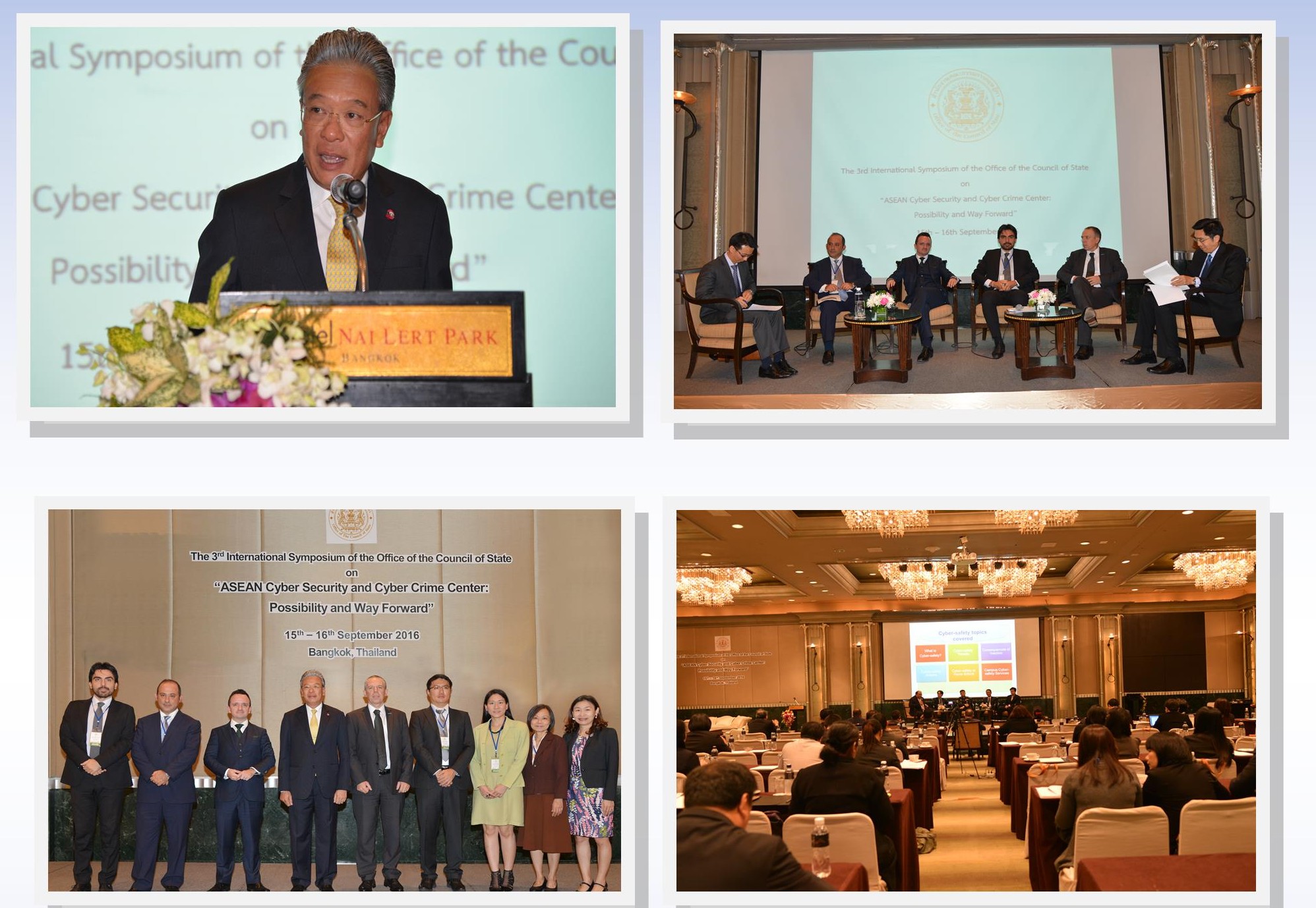 สำนักงานคณะกรรมการกฤษฎีกาได้จัดงานประชุมวิชาการระหว่างประเทศ ครั้งที่ ๓ ประจำปี พ.ศ. ๒๕๕๙ ในหัวข้อ “การพัฒนาความร่วมมือในเรื่องความมั่นคงปลอดภัยทางไซเบอร์และอาชญากรรมทางไซเบอร์ ตลอดจนมุมมองต่อความเป็นไปได้ในการจัดตั้งศูนย์ความมั่นคงปลอดภัยทางไซเบอร์ของอาเซียน”